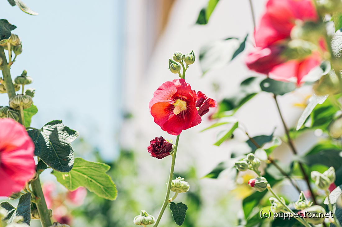 도서관에서 빌린 책을 반납하러 가는 길에 있는 빌라 한쪽 벽에 접시꽃이 한창입니다. 매번 그냥 지나다니다가, 오늘은 카메라가 가방에 있어서 몇 장 찍어봤습니다.