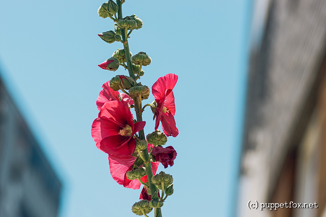 골목 어귀에 핀 접시꽃